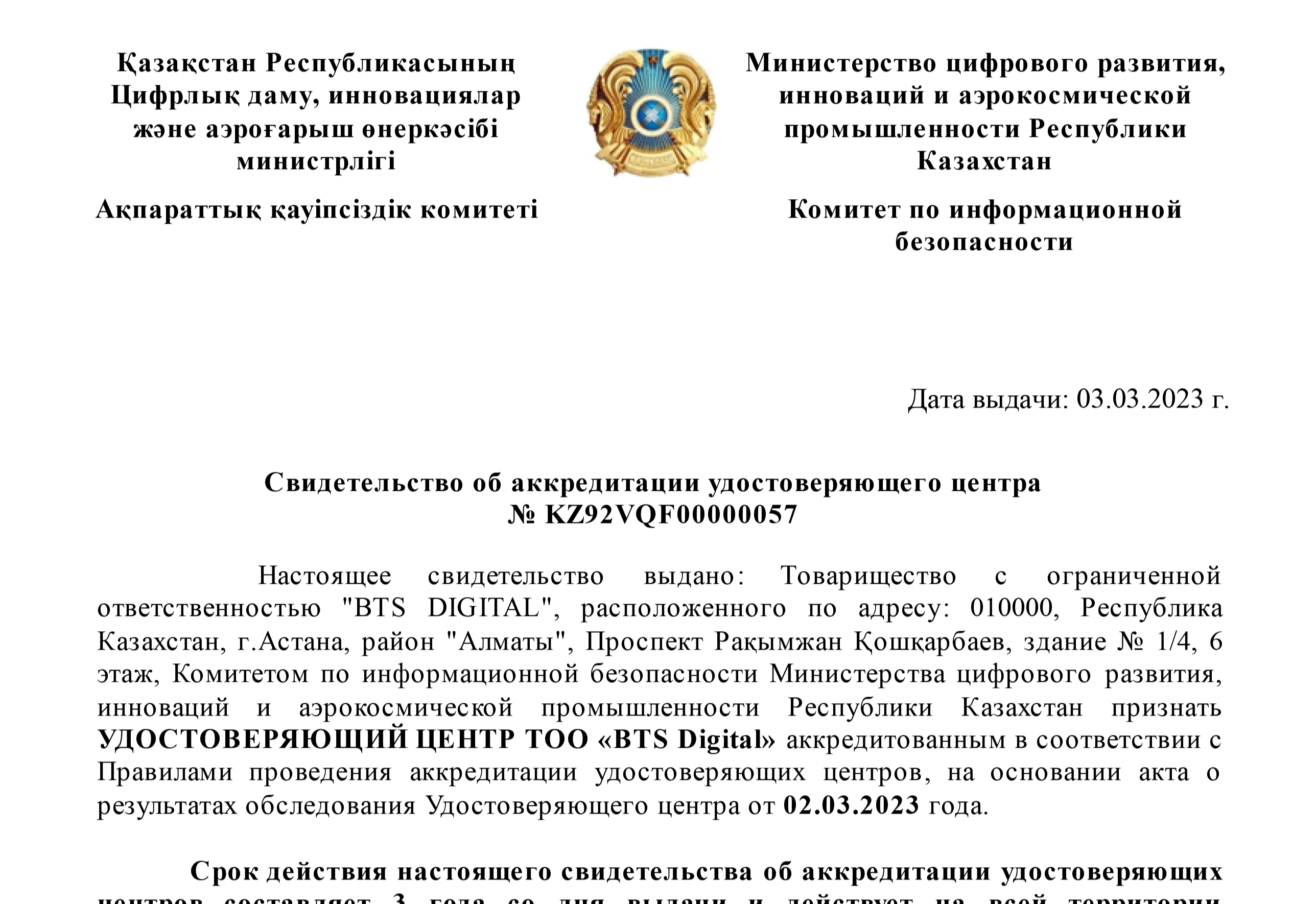 Одобрено ГТС при КНБ РК, КИБ при МЦРИАП, Отделом ИБ НИТ