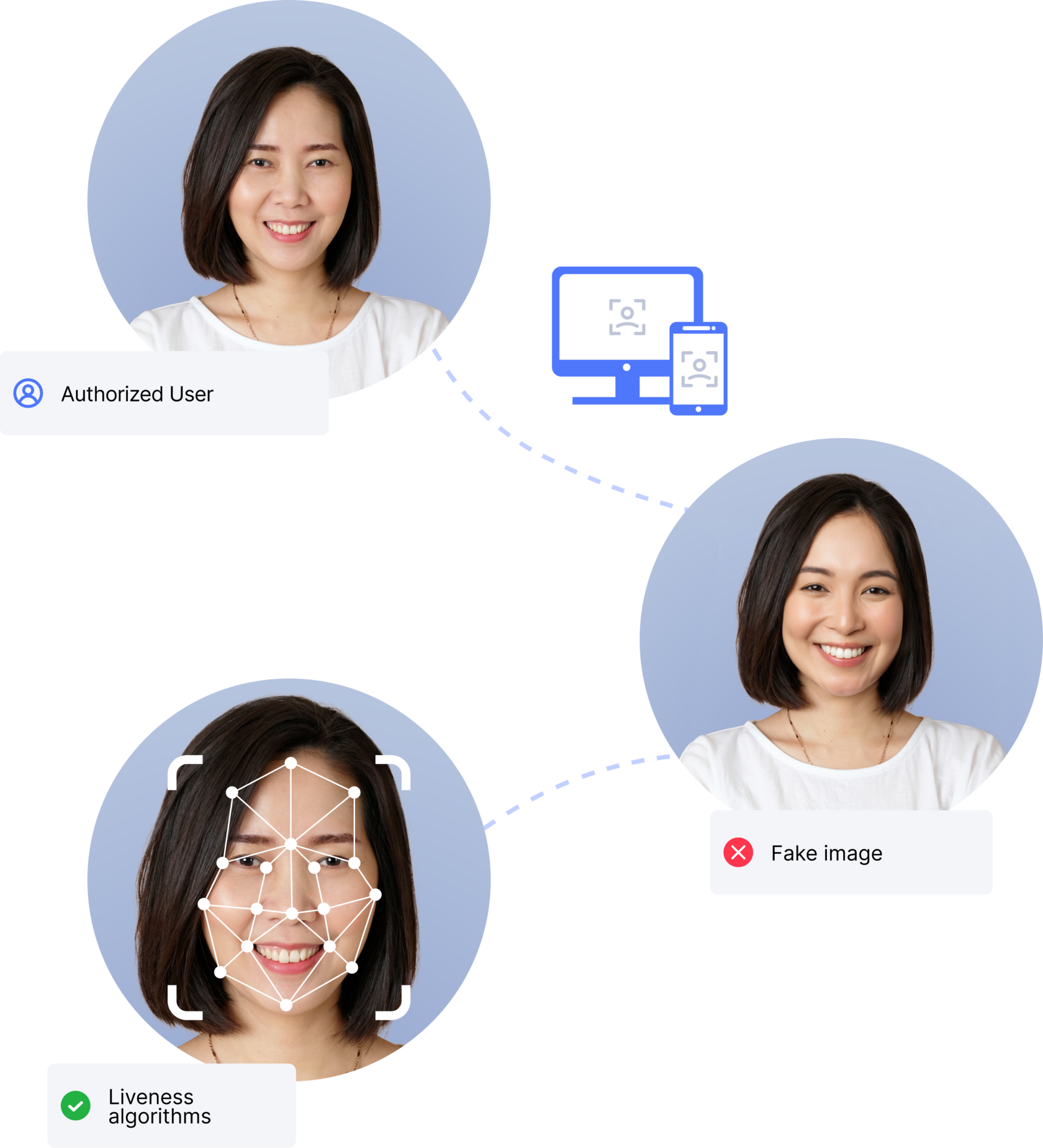 Our liveness algorithms resist all spoofing attacks including deepfake, video, photo, 3d masks and 3d heads. We even distinguish between twins.